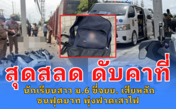สุดสลด นักเรียนสาว ม.6 โรงเรียนดัง ขี่จยย. เสียหลักชนฟุตบาท พุ่งฟาดเสาไฟ ดับคาที่